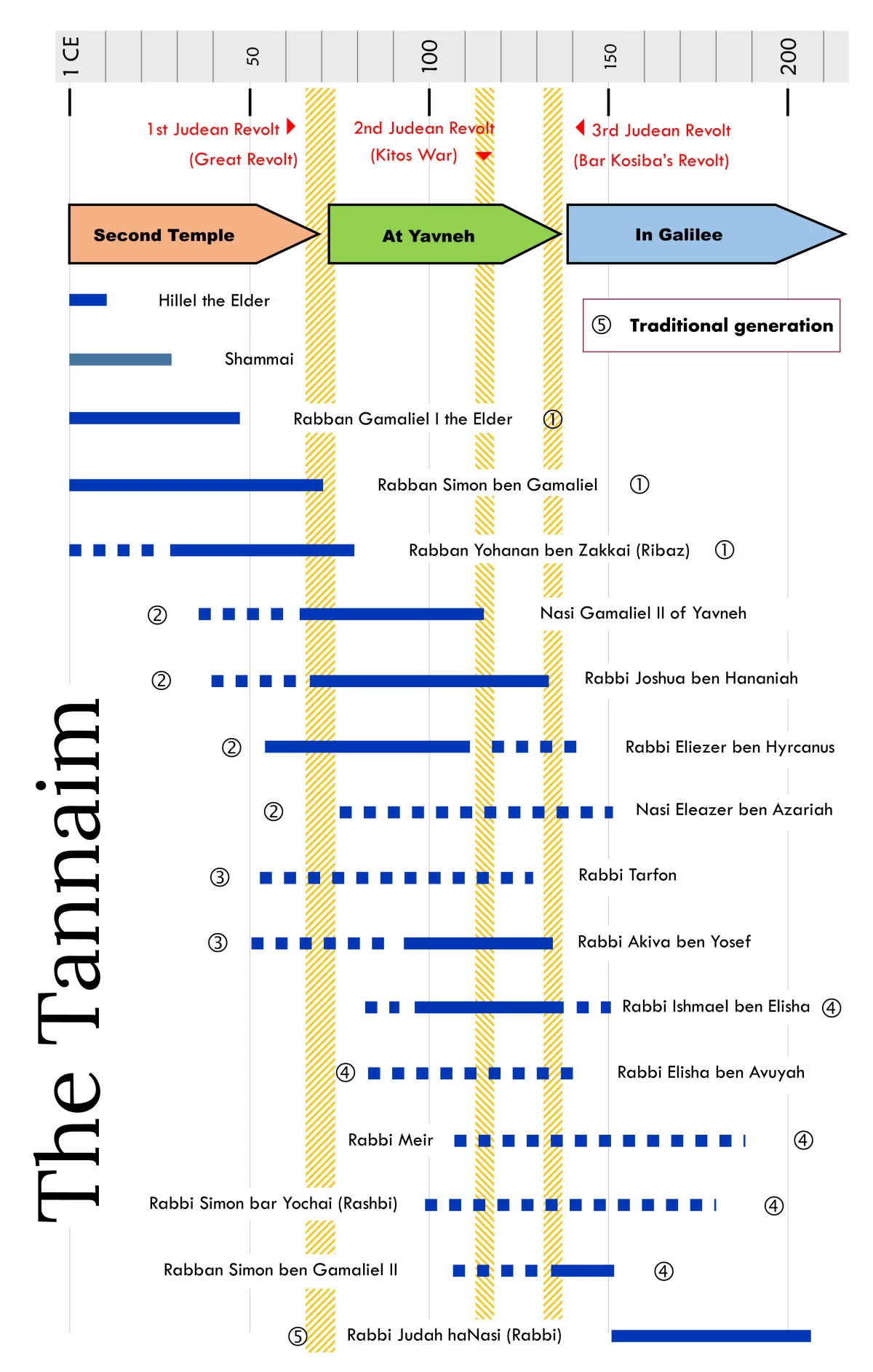 This is a timeline of the Tannaim, "teachers". These were the earliest rabbis, who lived